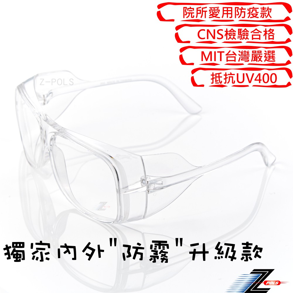 【Z-POLS】防霧升級款高規護目鏡 全透明PC材質抗UV400防飛沫眼鏡ST25(可直接配戴也可包覆度數鏡