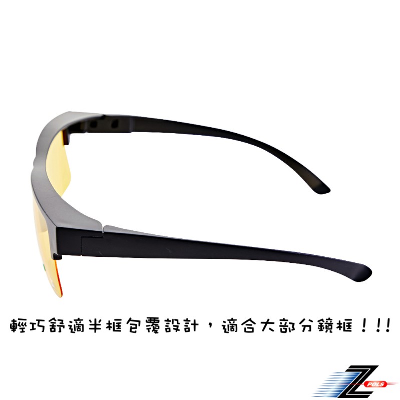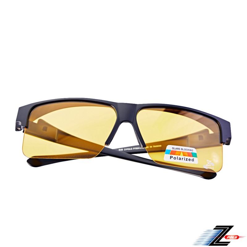 【Z-POLS】半框型包覆式設計套鏡 抗UV400頂級Polarized寶麗來夜用偏光眼鏡(消光黑框體 輕量化設計)