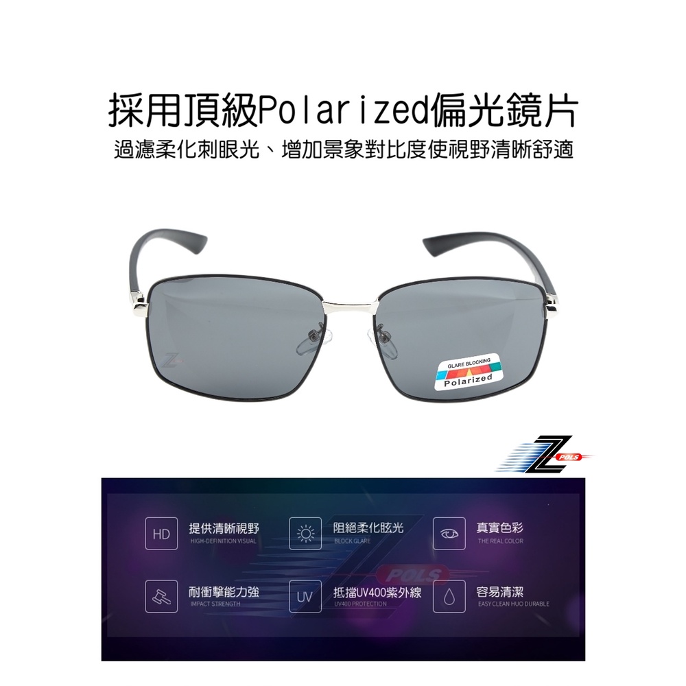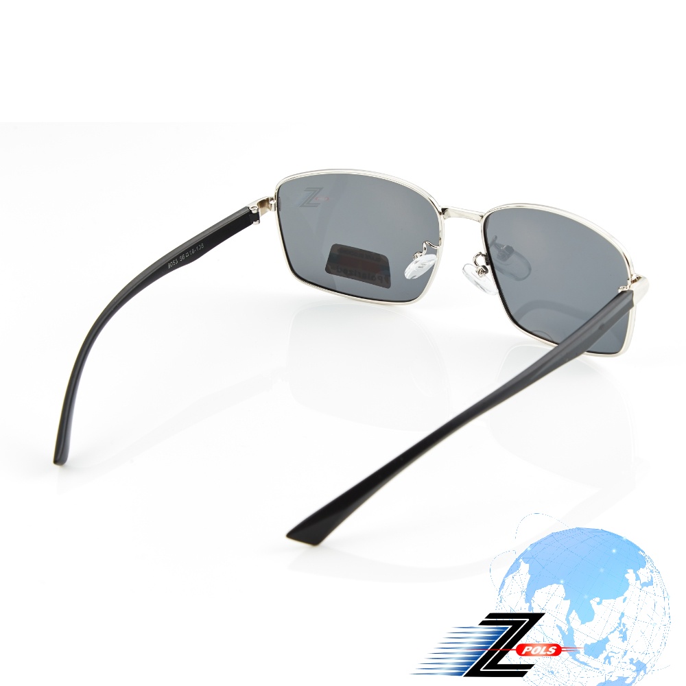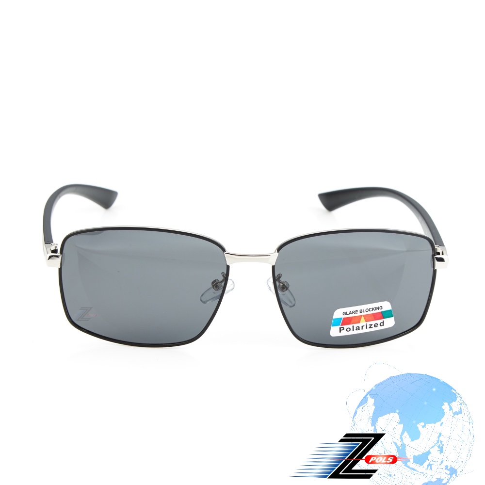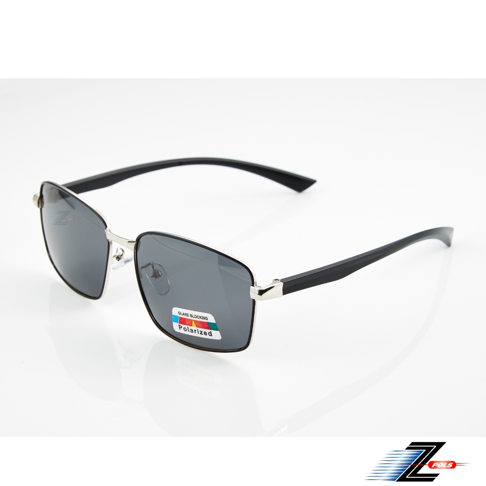 【Z-POLS】金屬霧黑配銀雙色框搭頂級舒適TR90彈性腳架 Polarized抗UV400黑偏光太陽眼鏡(輕量偏光鏡)