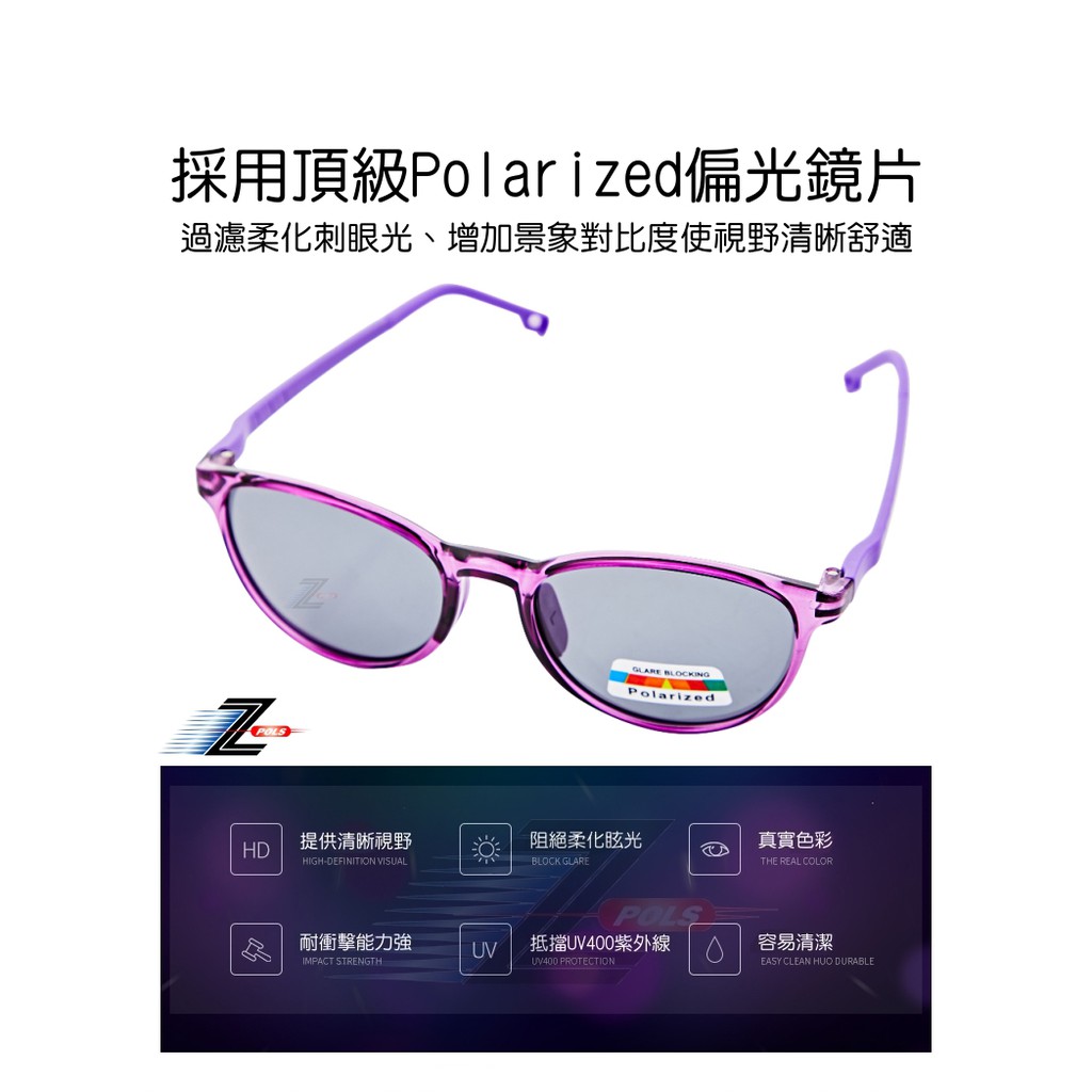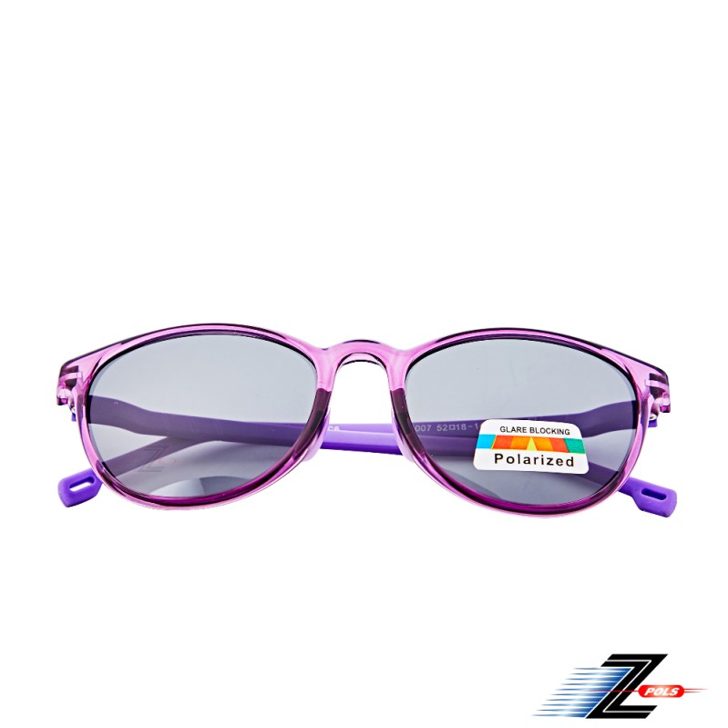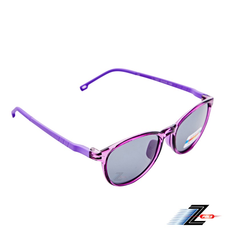 【Z-POLS】兒童專用紫色系TR90輕量框體材質 搭頂級Polarized寶麗來偏光黑抗UV400太陽眼鏡