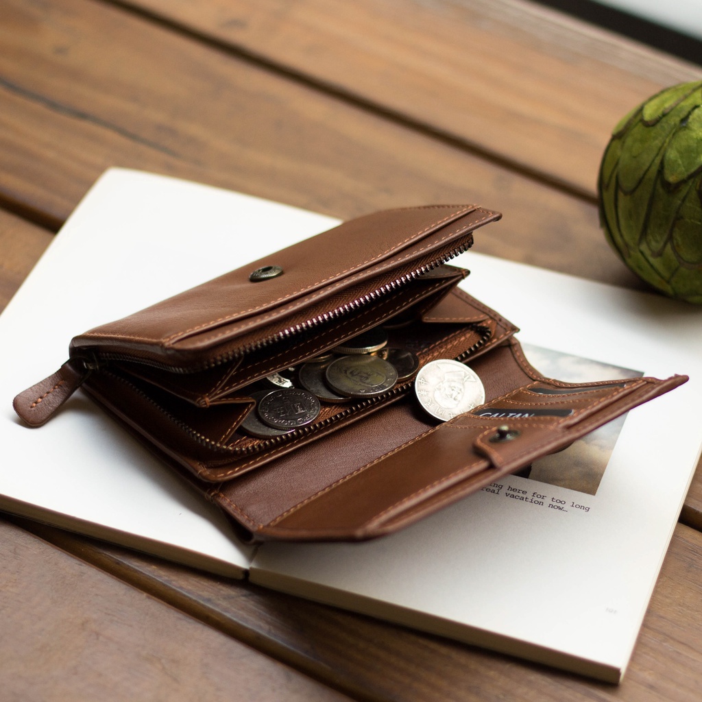【CALTAN】真皮/中短夾|中性三折扣式真皮中夾-072622_五色