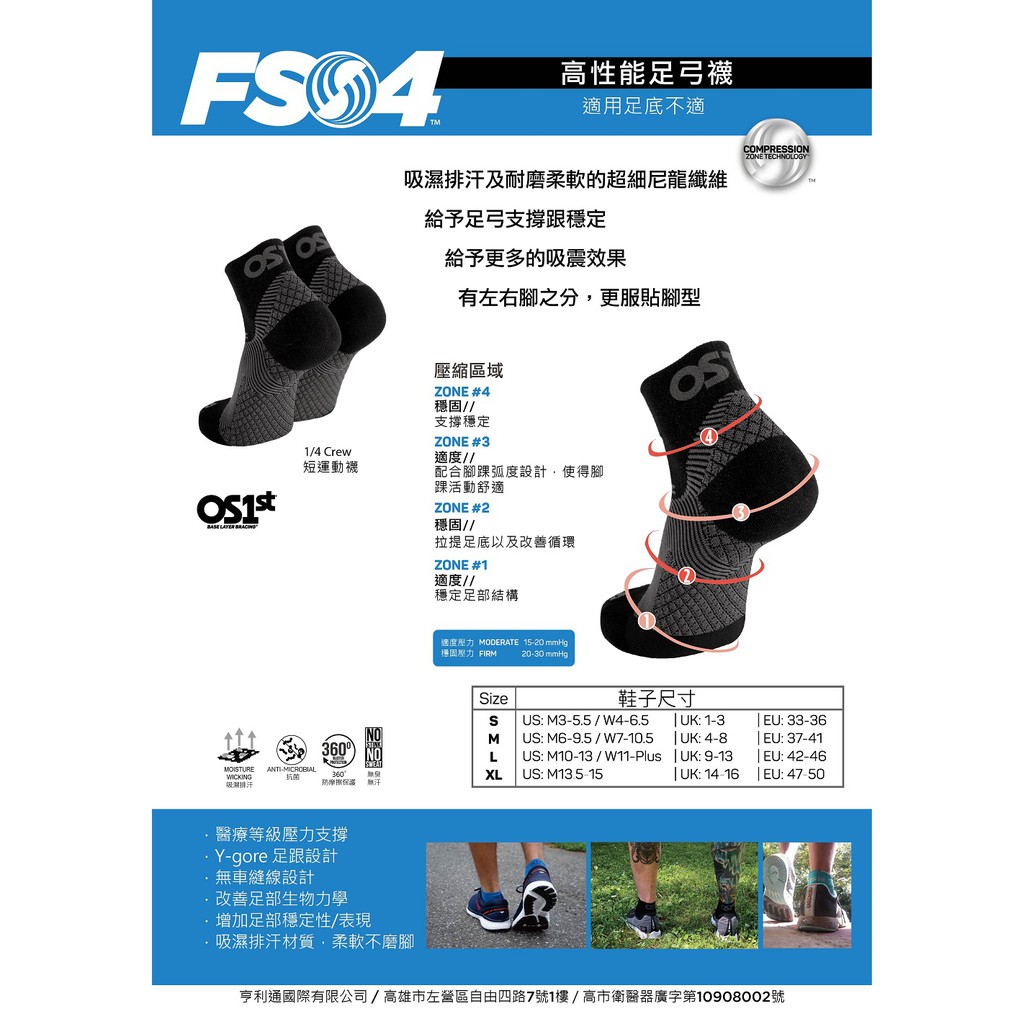 〔多雙優惠可互相替換〕OS1st FS4高性能足弓襪(短筒襪) 機能襪 短襪 襪子 黑色(一雙入)