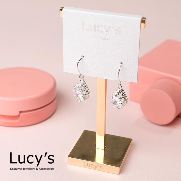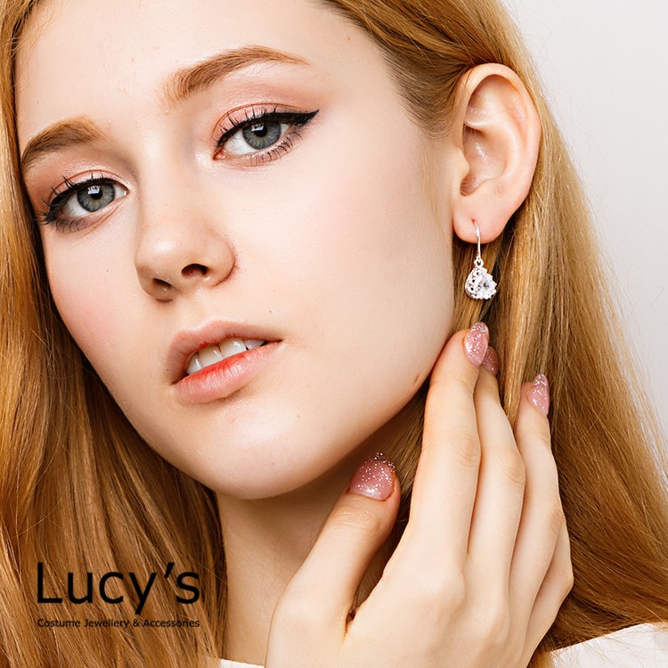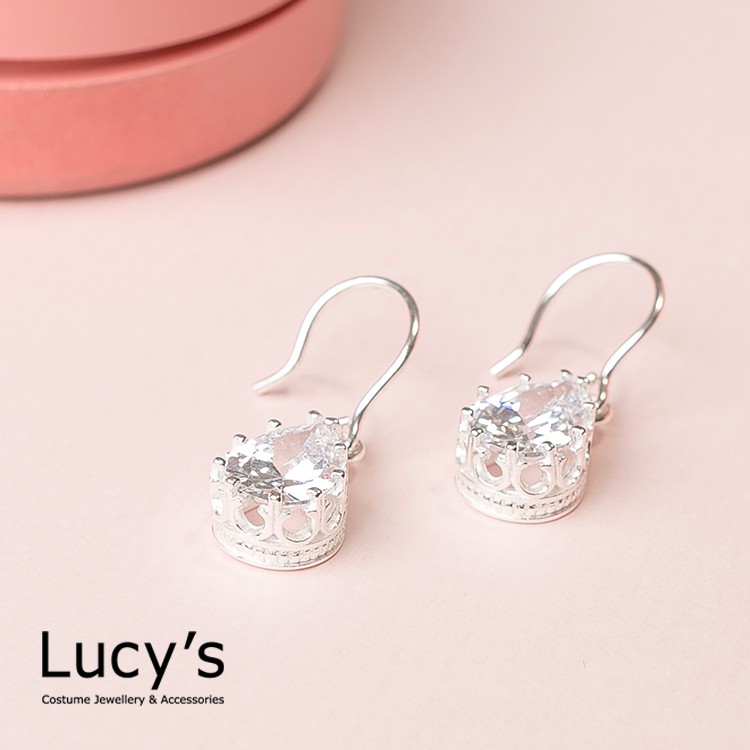 Lucy's 925純銀 水滴鋯石 耳勾耳環 (18530)