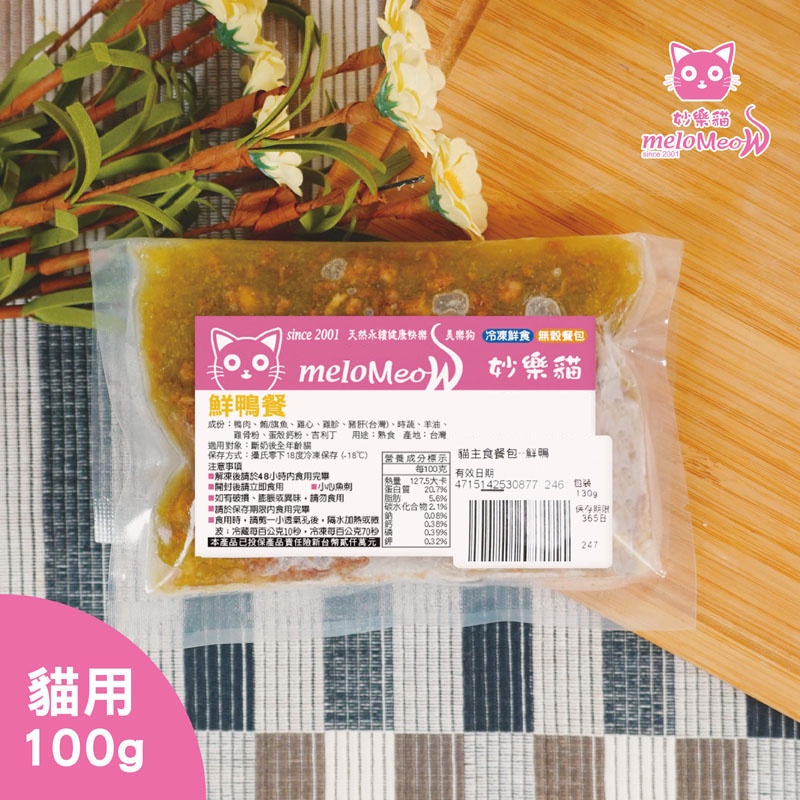 【毛手毛腳】貓鮮食餐包 鮮鴨 妙樂貓 冷凍寵物鮮食 貓咪鮮食 貓咪餐包 天然鮮食 多元多樣輪替 零添加 肉多蔬菜泥
