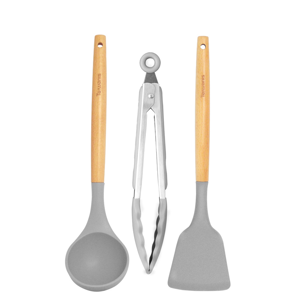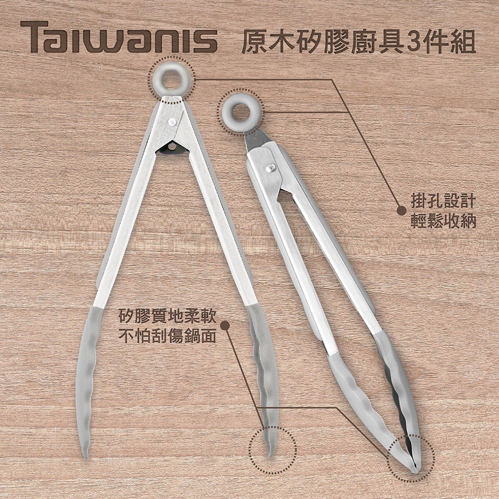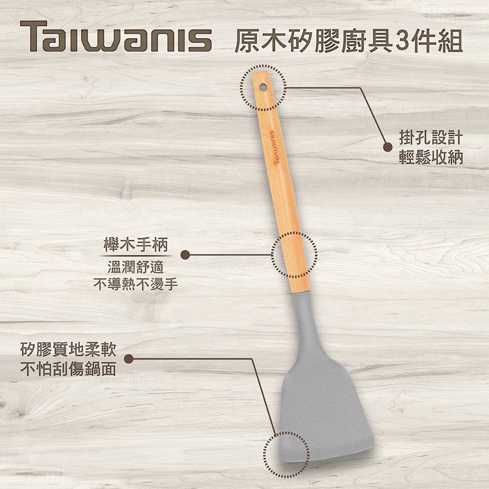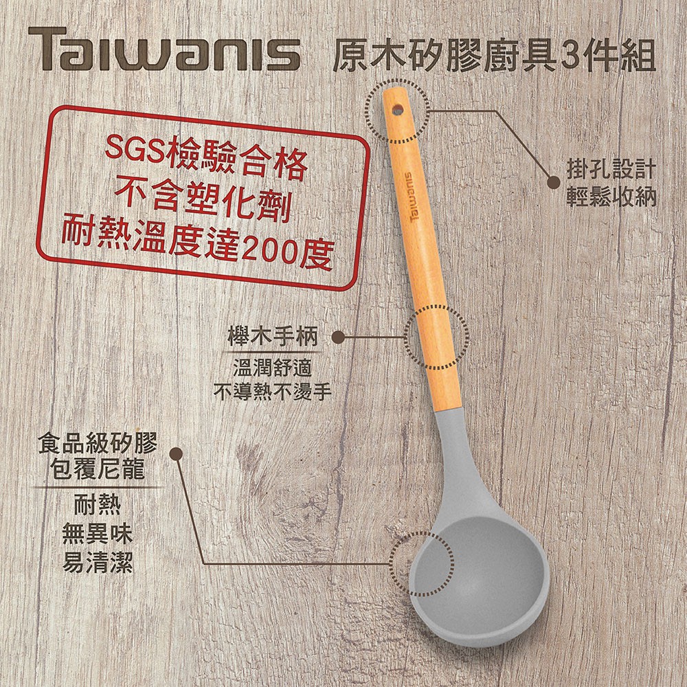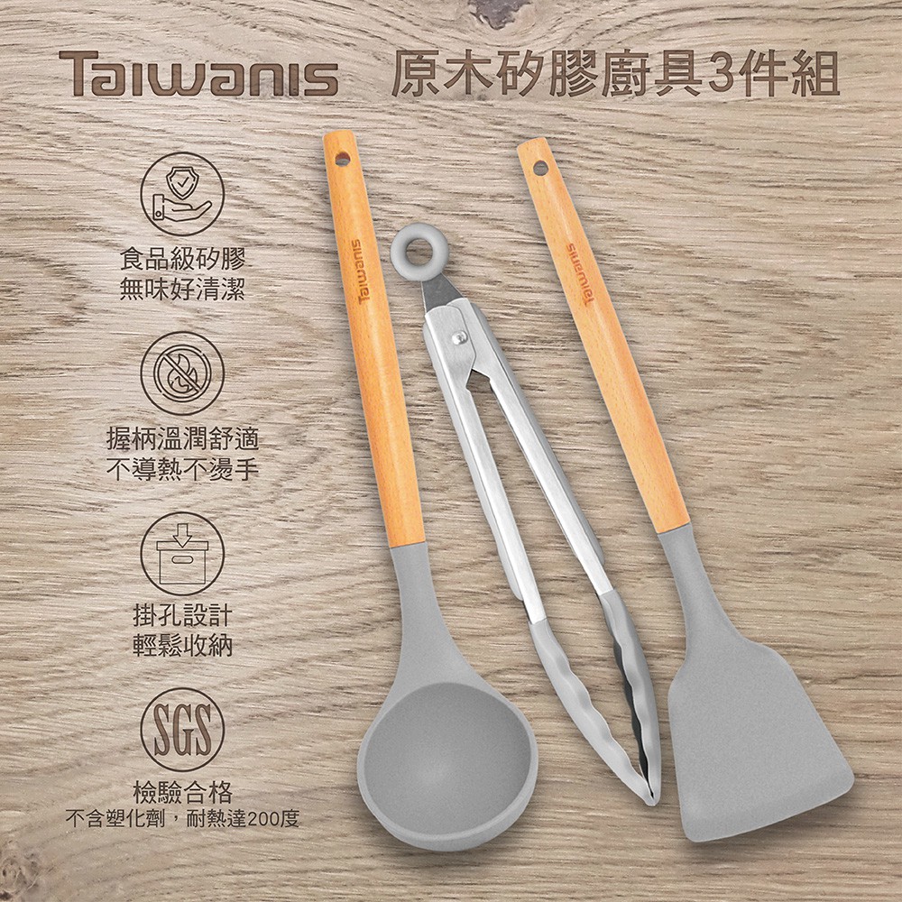 【Taiwanis】原木矽膠廚具3件組TKW-03A 矽膠廚具 矽膠鍋鏟 矽膠煎鏟 不沾鍋鍋鏟 矽膠湯勺 矽膠食物夾