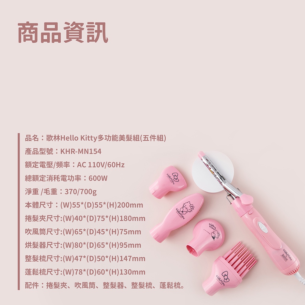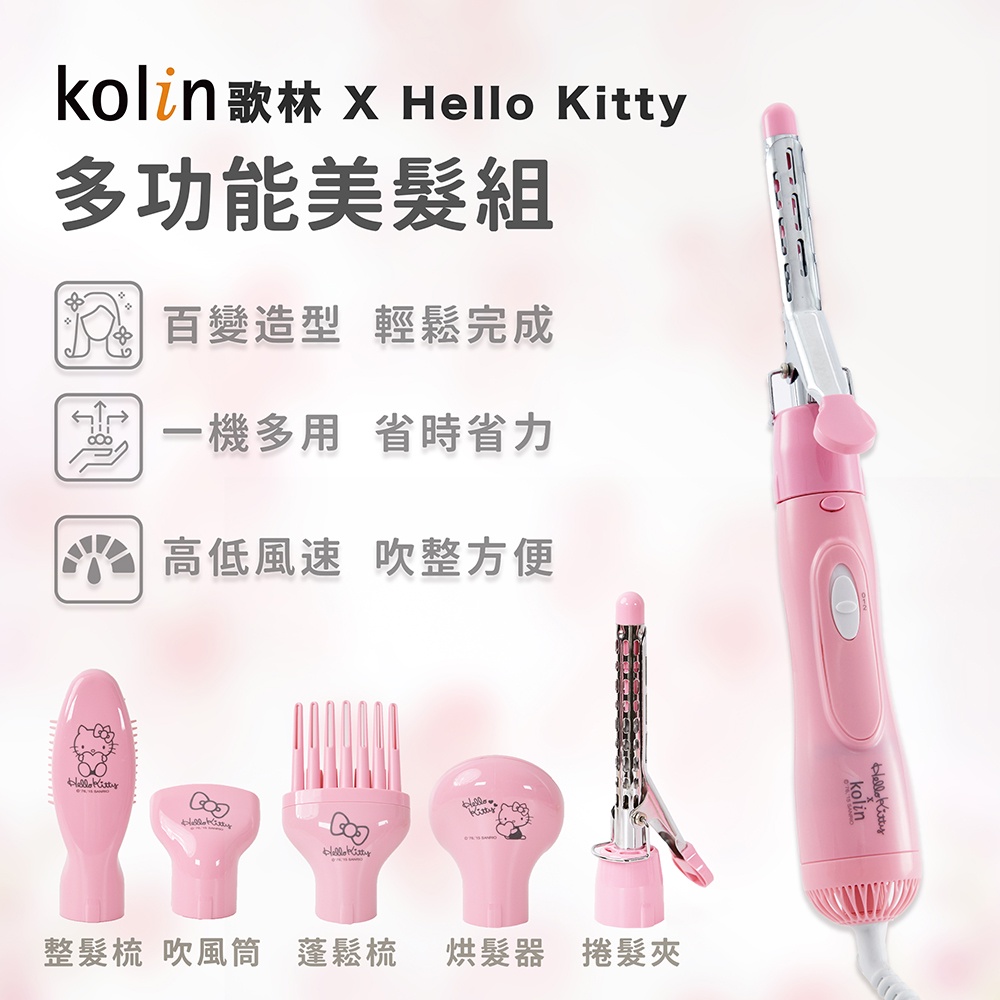 [福利品]【Kolin】歌林Hello Kitty多功能美髮組(五件組)KHR-MN154