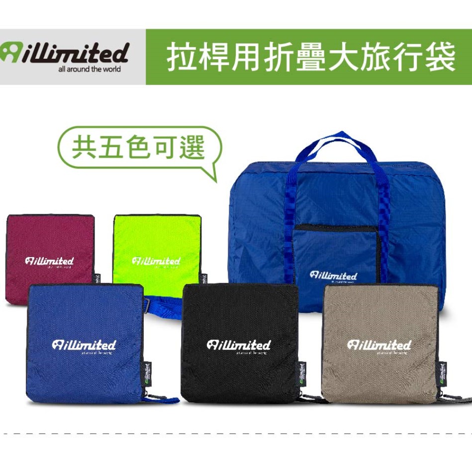 【illimited】一厘米拉桿用折疊大旅行袋-深黑/鐵灰/玫紅/寶藍/螢光綠 超輕Nylon材質 購物袋 行李袋