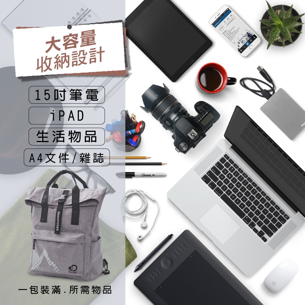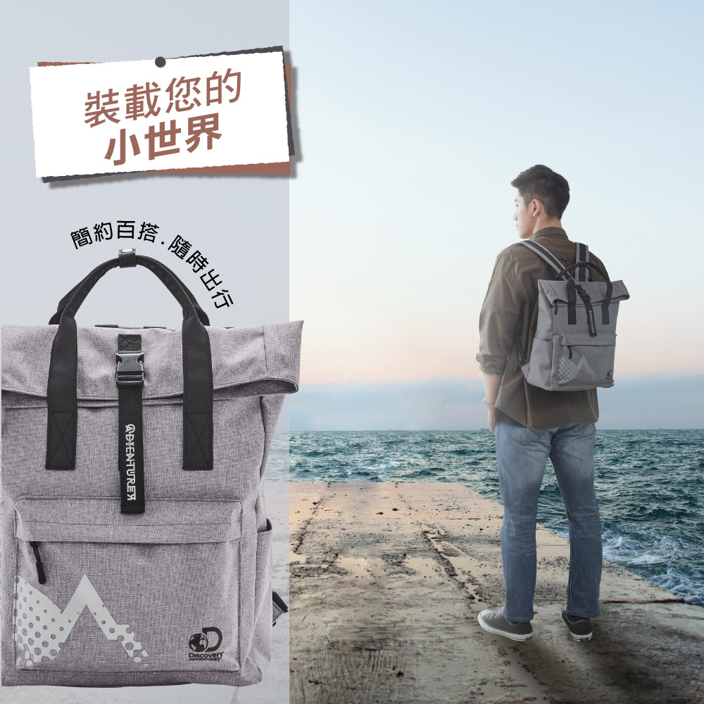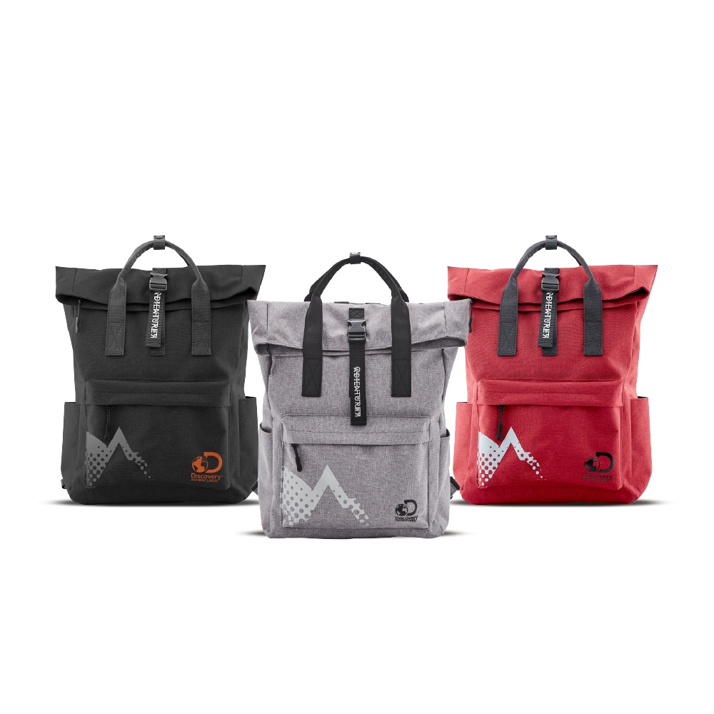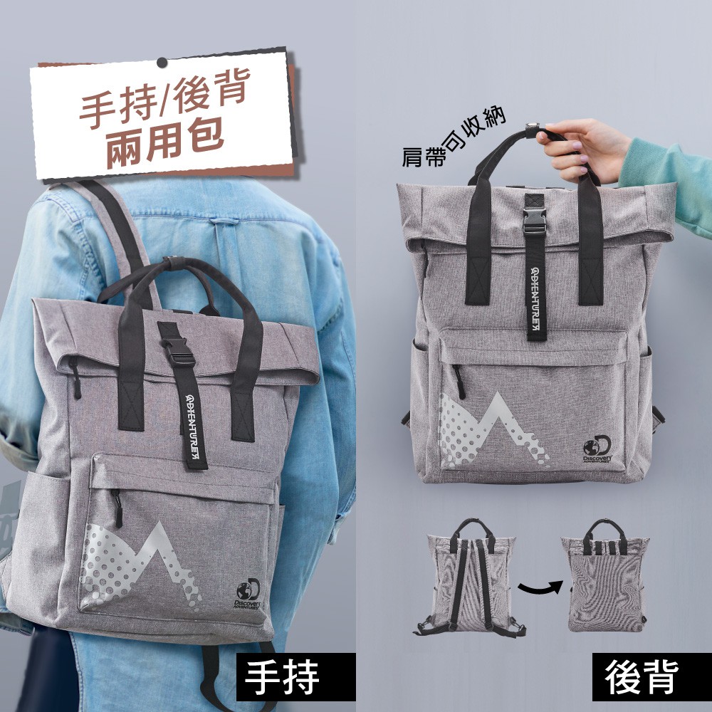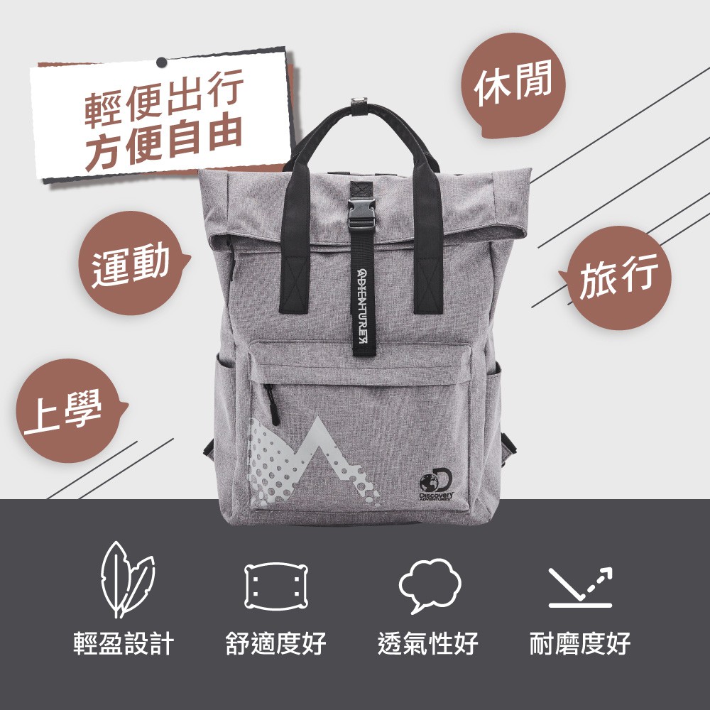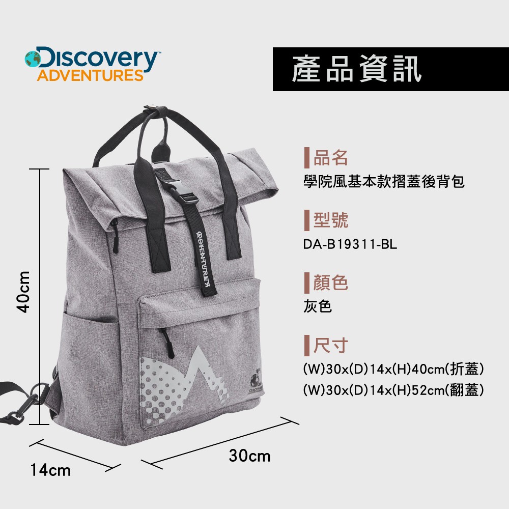 【Discovery Adventures】學院風基本款摺蓋後背包-黑/灰/紅 後背包 背包 雙肩包
