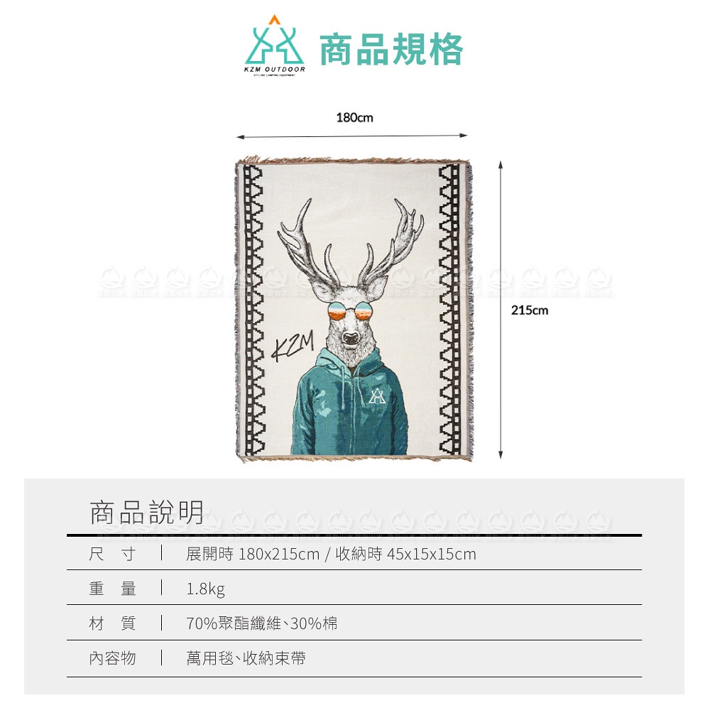 【KAZMI 韓國 KZM 麋鹿先生萬用毯1.8kg】K21T3Z09/蓋毯/地墊/野餐墊/登山露營