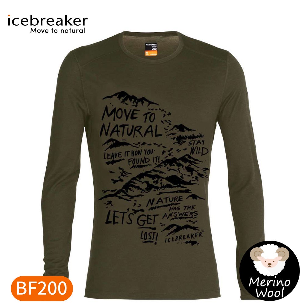 【Icebreaker 男 Oasis 圓領長袖上衣BF200《天然山徑/橄欖綠》】0A59KX/內層衣/薄長袖/內著