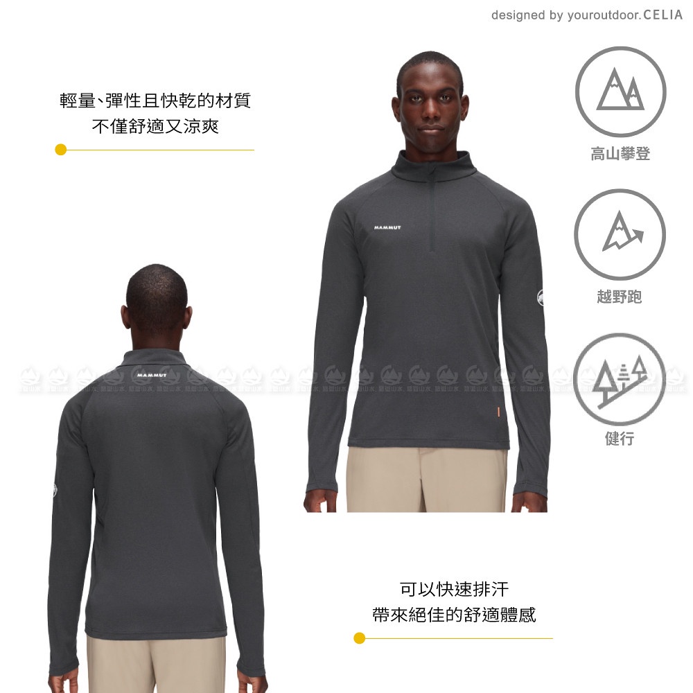 【MAMMUT 瑞士 男AegilityHalfZipLongsleeve長袖排汗衣《幻影黑/白》】1016-00710