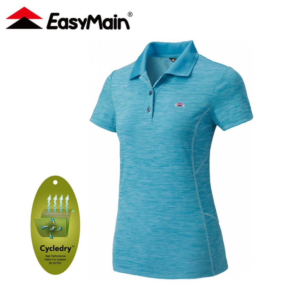 【EasyMain 衣力美 女 排汗短袖POLO衫《寶藍》】SE21004/機能上衣/透氣上衣/運動排汗衫/短袖
