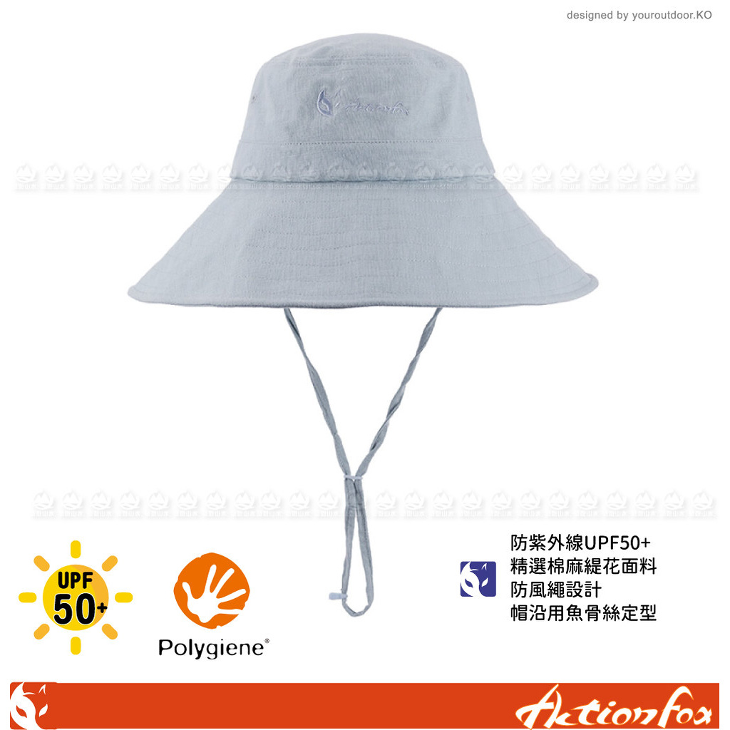 【ActionFox 挪威 女 抗UV抗菌繡花遮陽帽《灰藍》】630-5290/圓盤帽/防曬帽/透氣/登山/園藝