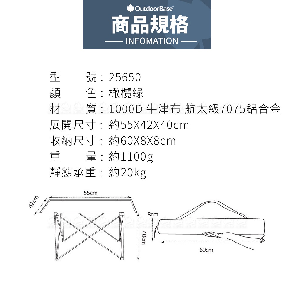 【OutdoorBase 奈米 鋁合金輕量桌S《橄欖綠》】25650/摺疊桌/露營桌/輕巧桌