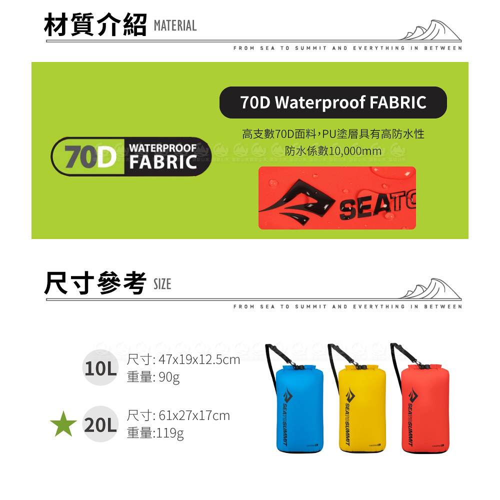【Sea To Summit澳洲 70D可揹負式輕量防水收納袋20公升《紅》】STSASBAG20L/朔溪包//悠遊山水