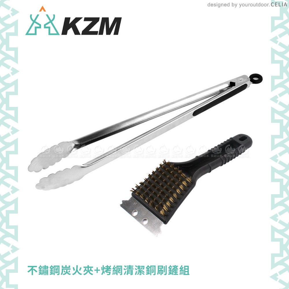【KAZMI 韓國 KZM 不鏽鋼炭火夾+烤網清潔銅刷鏟組】K5T3G008/炭火夾/清潔刷/烤網清潔組