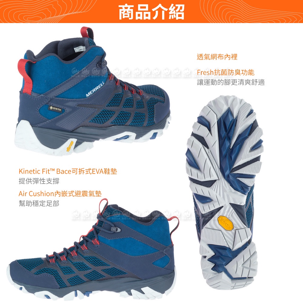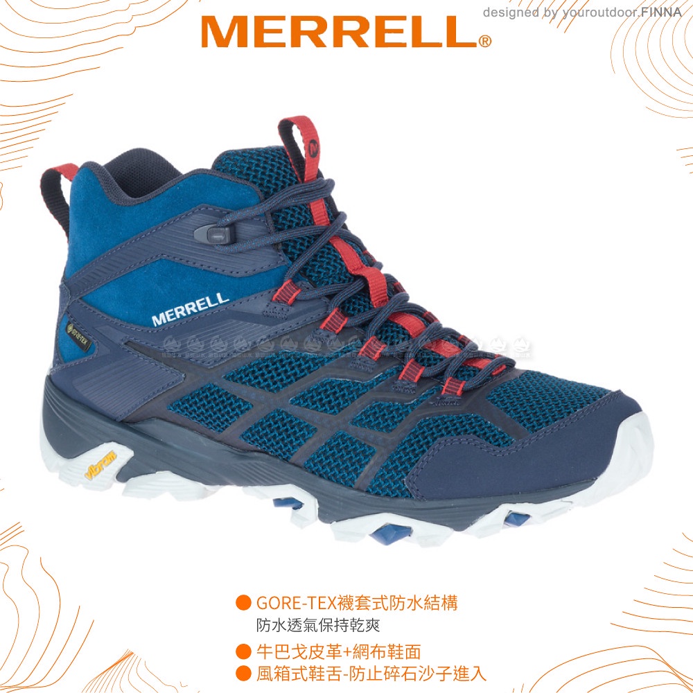 【MERRELL 美國 男 MOAB FST 2 MID GORE-TEX多功能健行鞋《藏藍/正紅》】ML599535