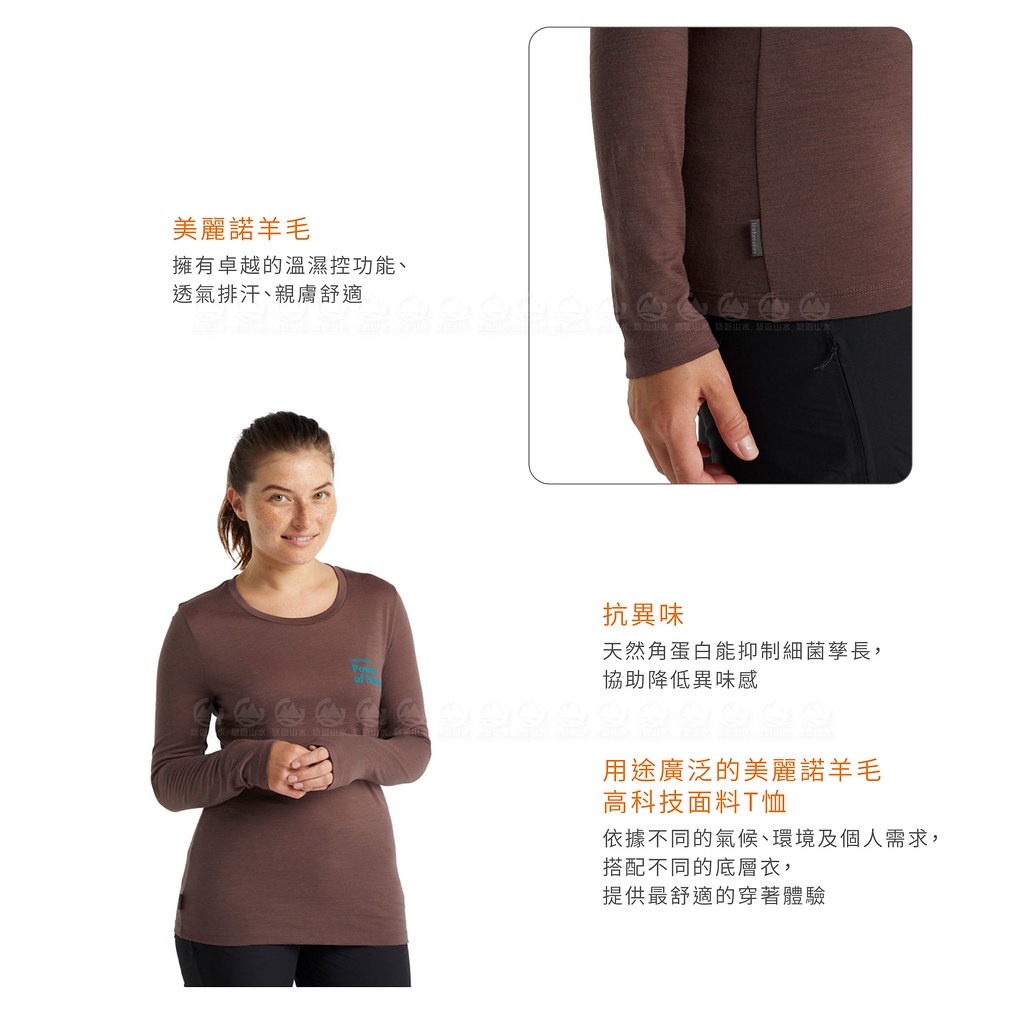 【Icebreaker 女 Tech Lite II 圓領長袖上衣《天然力量/肉桂深褐》】0A59IT/內層衣/薄長袖
