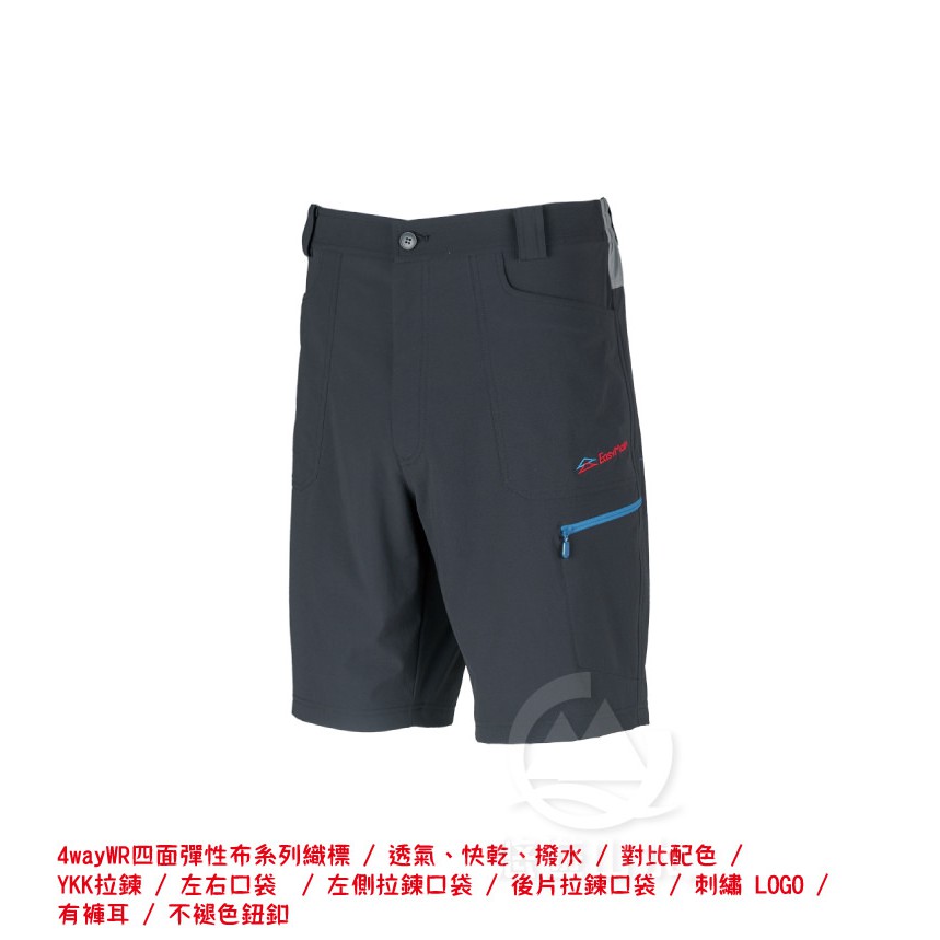 【EasyMain 衣力美 男 彈性潑水快乾五分褲《黑》】RE18047-7500/透氣/快乾/防潑水/短褲//悠遊山水