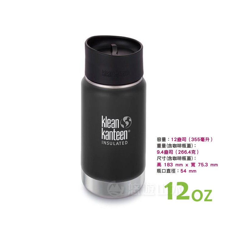 KLEAN KANTEEN 美國 12盎K寬口保溫鋼瓶(54mm)《消光黑》/保溫瓶/咖啡瓶蓋/K12VWPC/悠遊山水