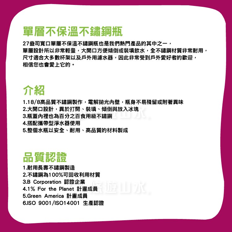 【KLEAN KANTEEN 美國 寬口不鏽鋼瓶27oz(54mm)《原色鋼》】K27WSSL/水壺/水瓶/運/悠遊山水