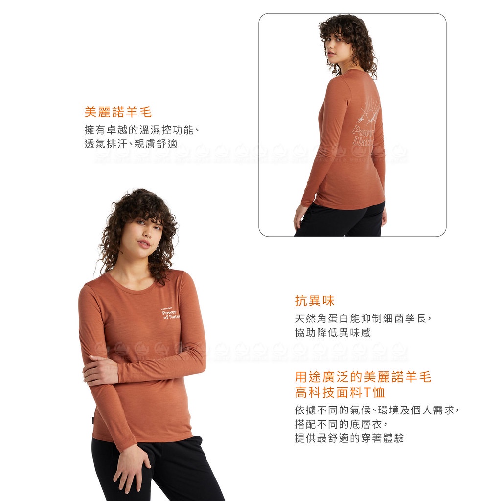 【Icebreaker 女 Tech Lite II 圓領長袖上衣《天然力量/柚橘》】0A59IT/內層衣/薄長袖/內搭
