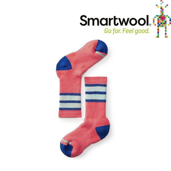 【SmartWool 美國 兒童 健行中級避震條紋中長襪《珊瑚紅》】SW001105/排汗襪/保暖襪/兒童襪/悠遊山水