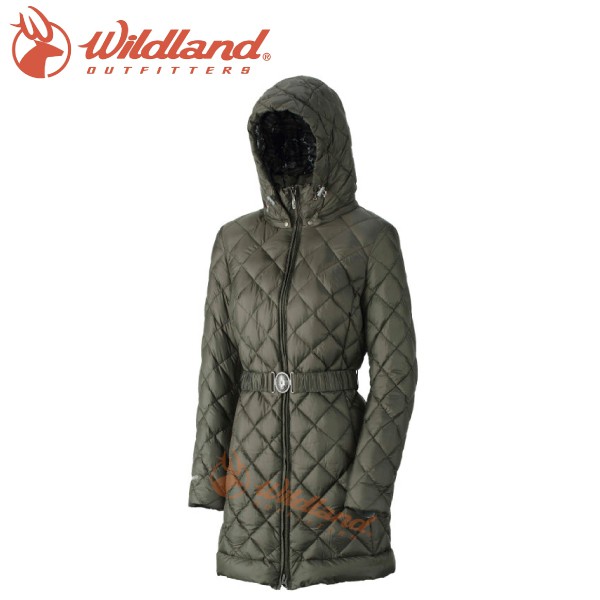 【Wildland 荒野 女款 輕量四層700FP中長羽絨衣 可可綠】0A32101/連帽外套/羽絨外套/保暖/悠遊山水