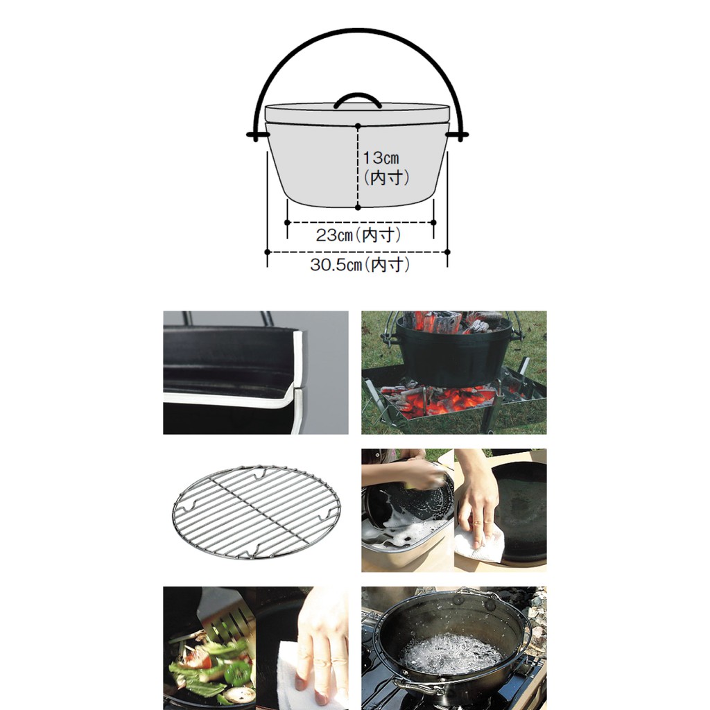 【UNIFLAME 日本 12吋黑皮鐵鍋 】U660966/黑皮鐵鍋/荷蘭鍋/悠遊山水
