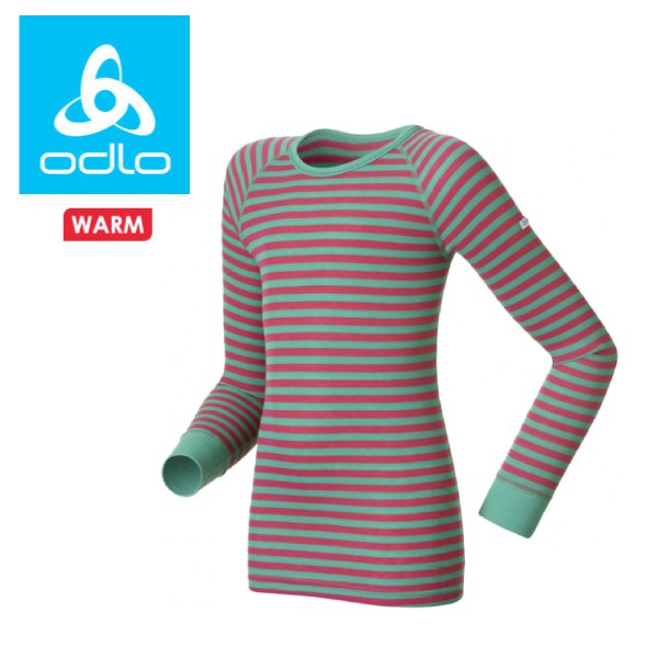 【ODLO 瑞士 兒童 長袖排汗內衣 桃紅/綠條】10459/長袖排汗內衣/保暖內衣/內搭褲/內層/悠遊山水