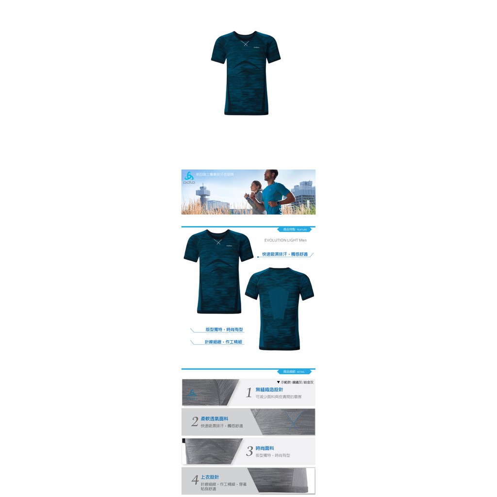 【ODLO 瑞士 男款 排汗衣短圓領銀離子《寶藍/黑》】18404222301/吸濕排汗/貼身舒適/悠遊山水