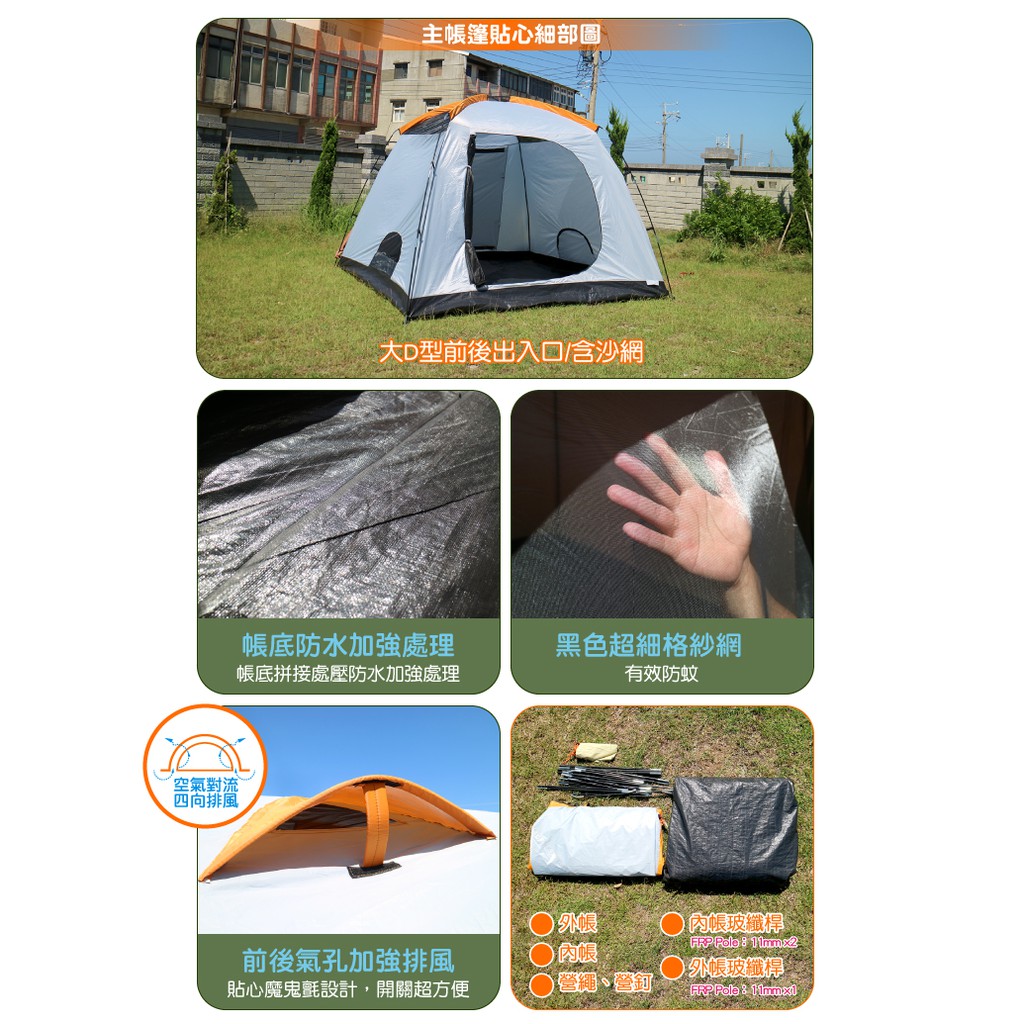 【VOSUM新桔楓 雙前庭加高6-8人防水四季型露營300帳篷《銀膠大天窗》】VS301/大空間/悠遊山水