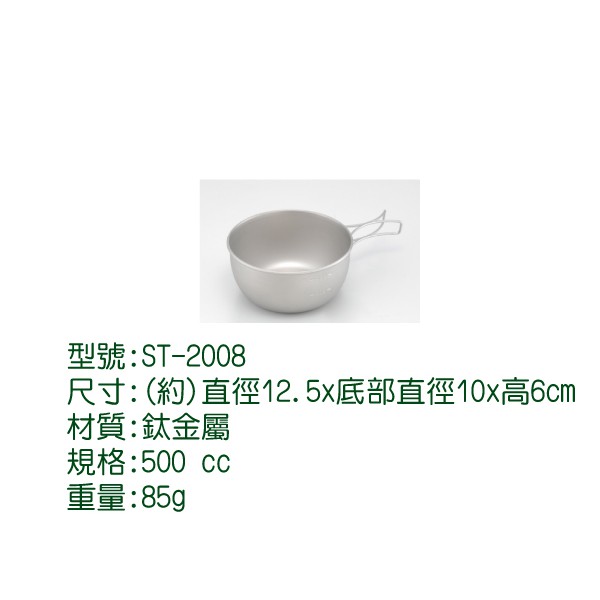 【Wen Liang 文樑 500CC鈦碗 】ST-2008/鈦碗/露營/登山/餐具/野炊/悠遊山水