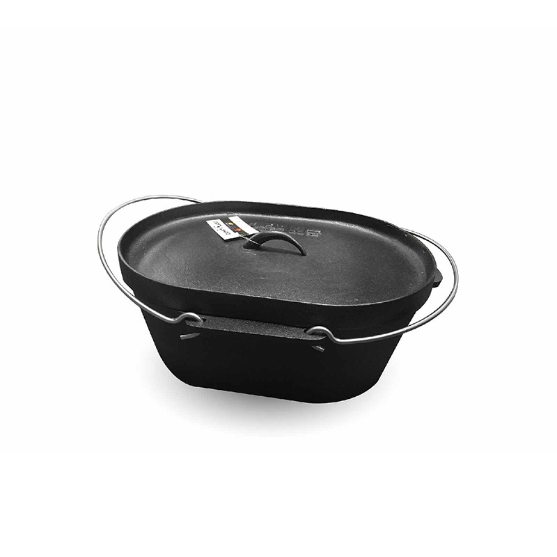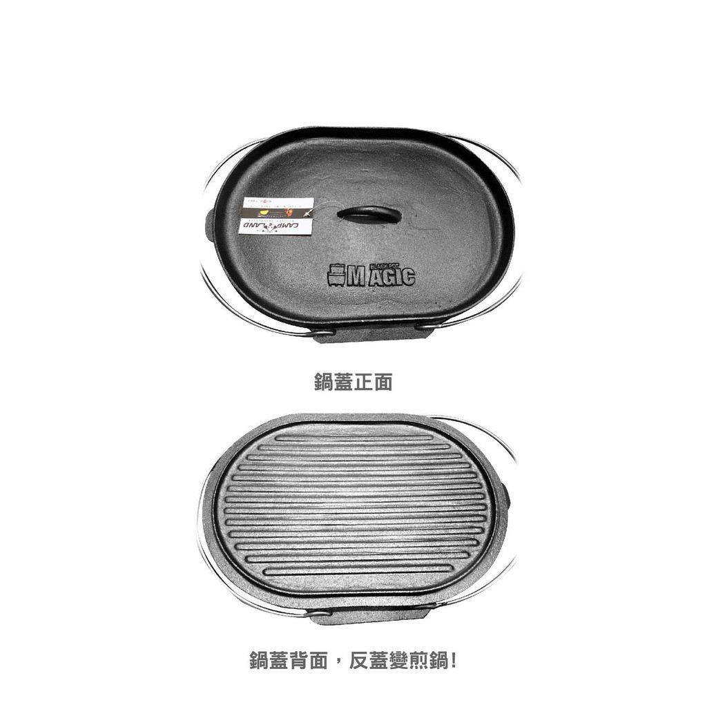 【CAMP LAND 橢圓形萬用魚烹鍋 (長14吋寬10吋)】 RV-IRON595/魚烹鍋/鑄鐵鍋/荷蘭鍋/悠遊山水