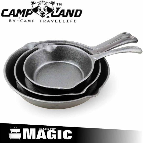 【CAMP LAND 三件套平底鍋 (6.5/8/10)】RV-IRON770A/鑄鐵鍋/荷蘭鍋/平底鍋/煎鍋/悠遊山水