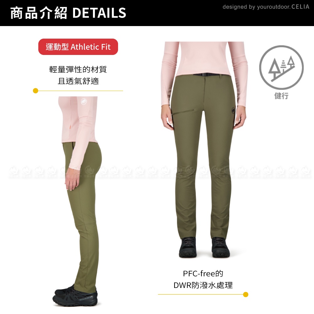 【MAMMUT 長毛象 女 Aegility Slim Pants AF 輕量健行長褲《綠鬣蜥》】1022-00282