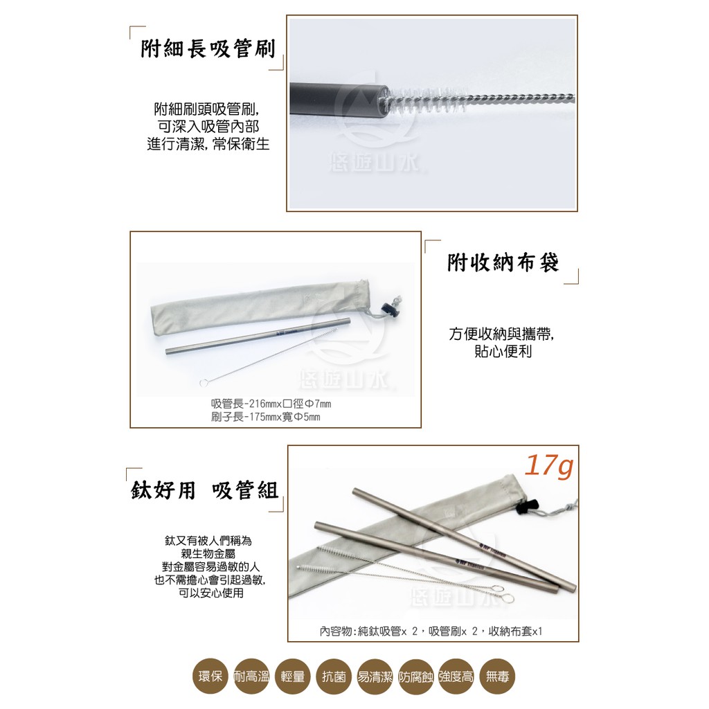 【美國 North Field 超輕量環保無毒耐腐蝕純鈦吸管2入組/附袋+清潔刷】ND-180/環保吸管/悠遊山水