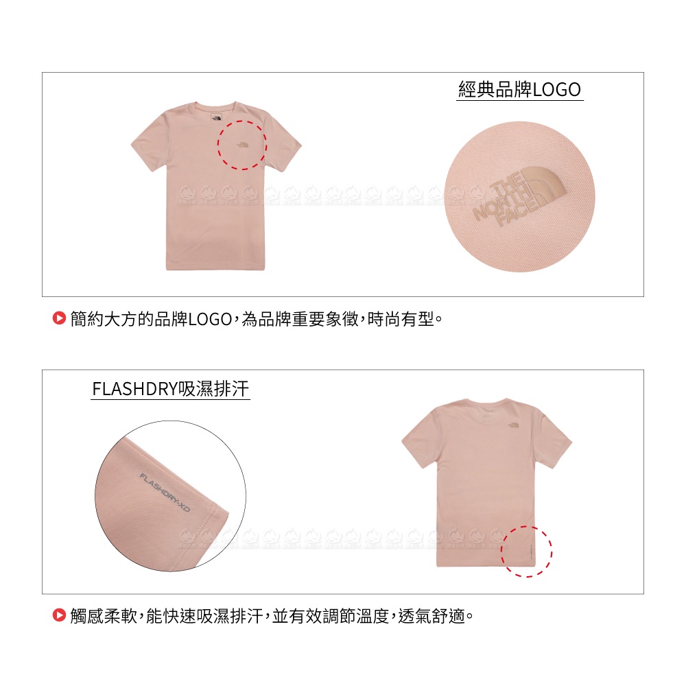【The North Face 女 排汗短袖T恤 AP《粉》】5JX1/短袖上衣/休閒短袖/運動短T/排汗衣