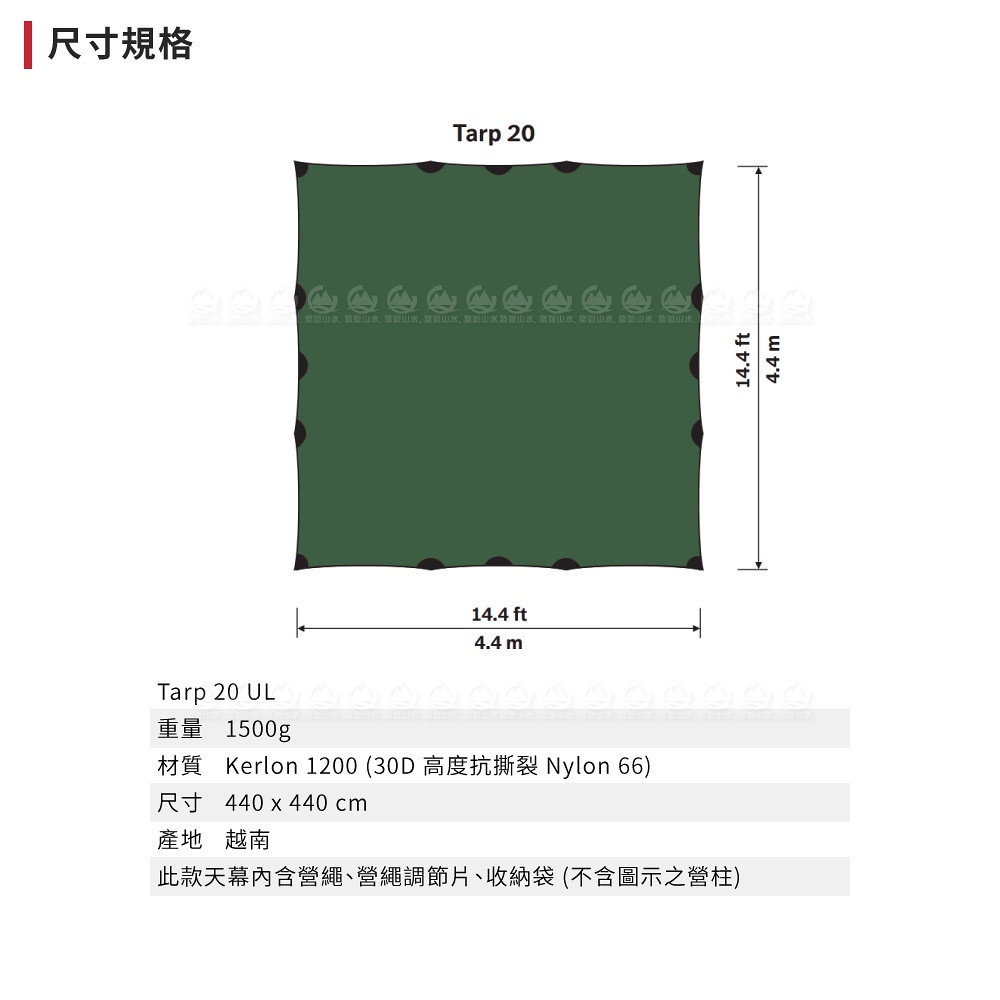 【HILLEBERG 瑞典 Tarp 20 UL輕量抗撕裂天幕外帳440x440cm《綠》】022061/客廳帳/天幕