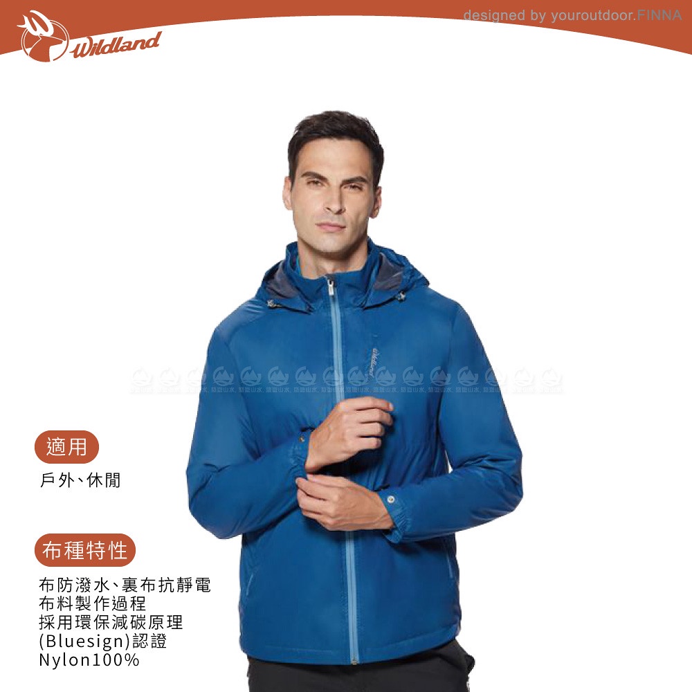 【Wildland 荒野 男 輕量天鵝絨防風保暖外套《帝國藍》】0A92908/保暖外套/防風外套