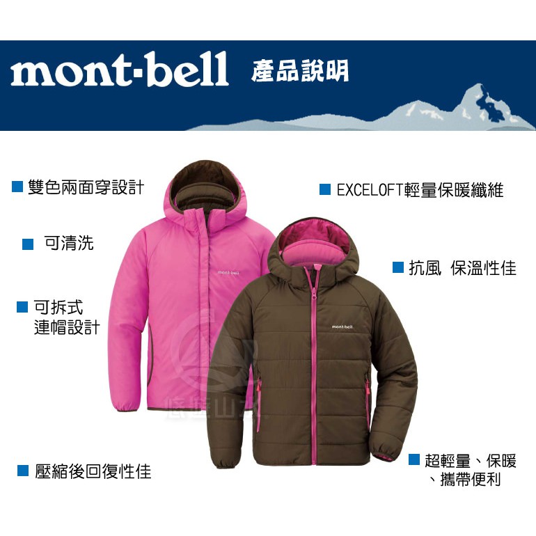 Mont-Bell 日本 兒童 THERMAWRAP PARKA 人造纖維外套《咖啡/粉》/1101585/保/悠遊山水