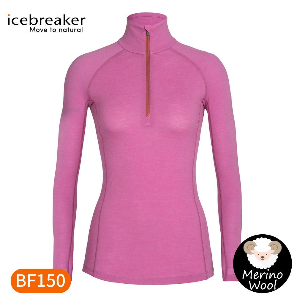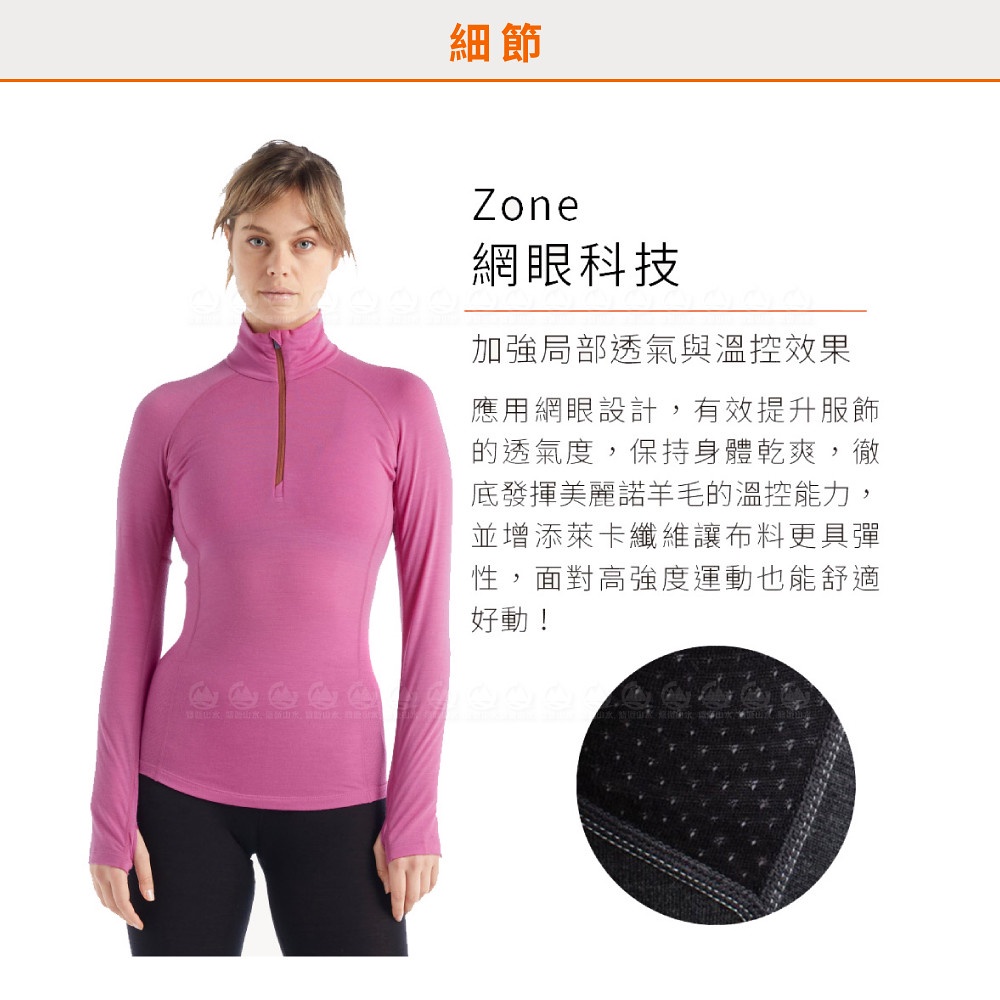 零碼出清【Icebreaker 女 ZONE 網眼透氣半開襟長袖上衣BF150《梅粉紅》】IB104332/保暖長袖/排