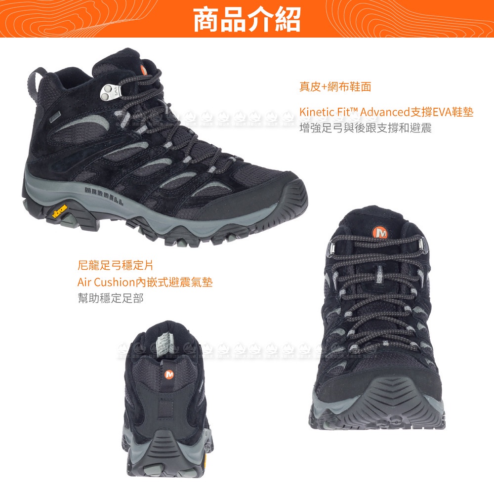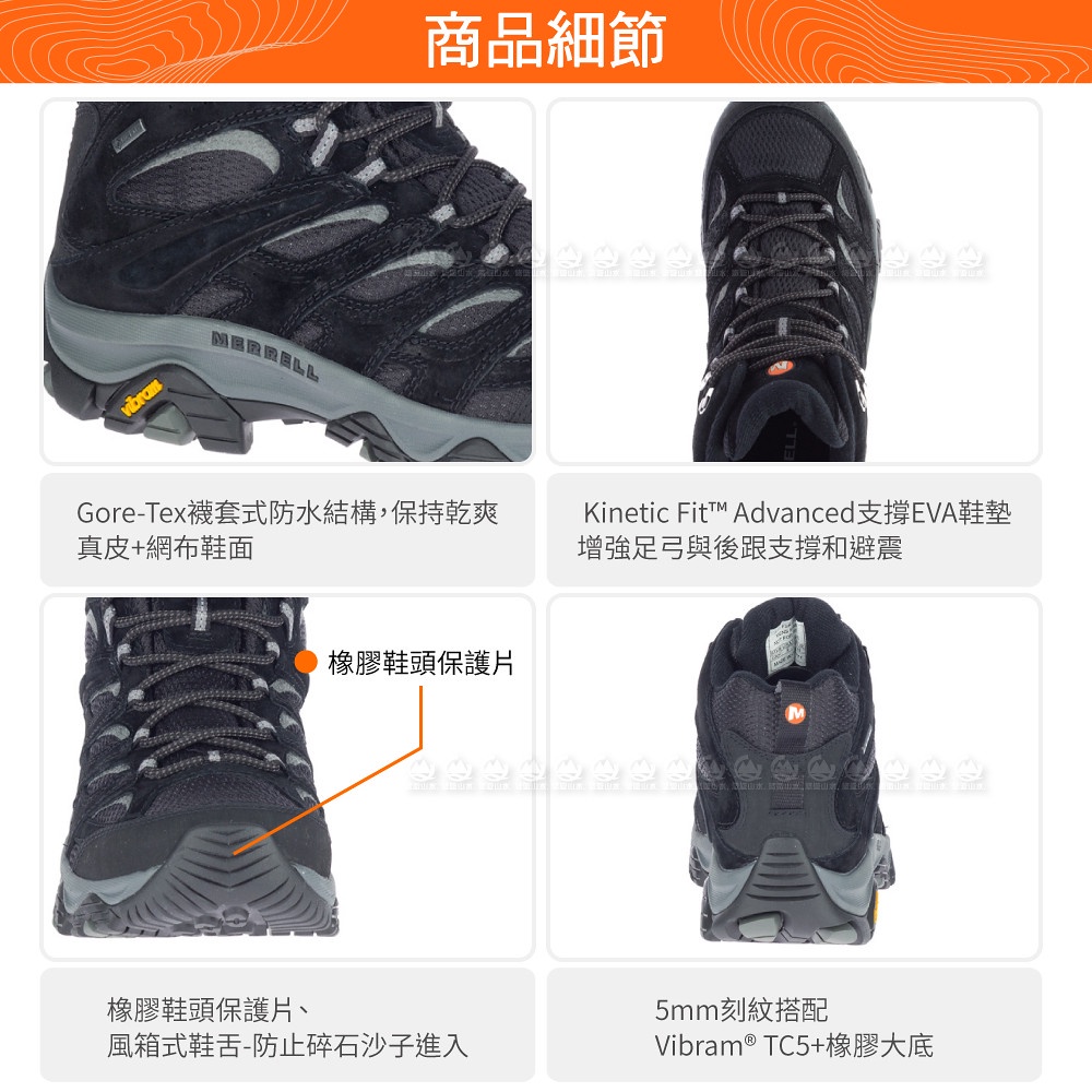 【MERRELL 美國 男 MOAB 3 MID GORE-TEX中筒登山鞋《黑》】ML036243/健走鞋