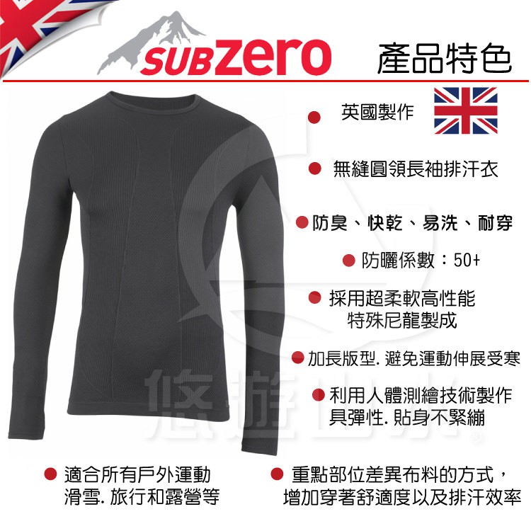 【Sub Zero 英國 Factor1+ 長袖無縫排汗衣《黑》】Factor 1 PLUS/內衣/薄長袖/防/悠遊山水