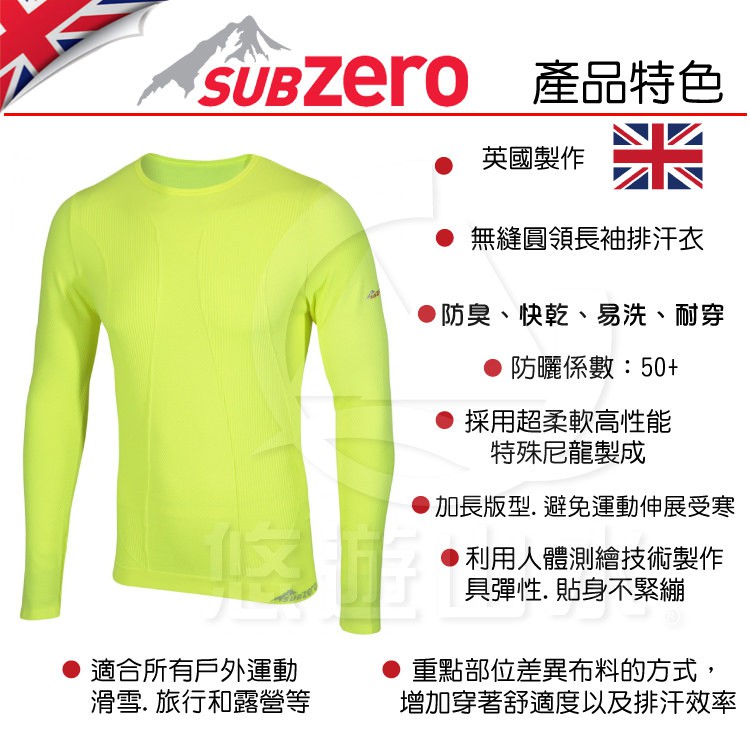 【Sub Zero 英國 Factor1+ 長袖無縫排汗衣《黃》】Factor 1 PLUS/內衣/薄長袖/防/悠遊山水