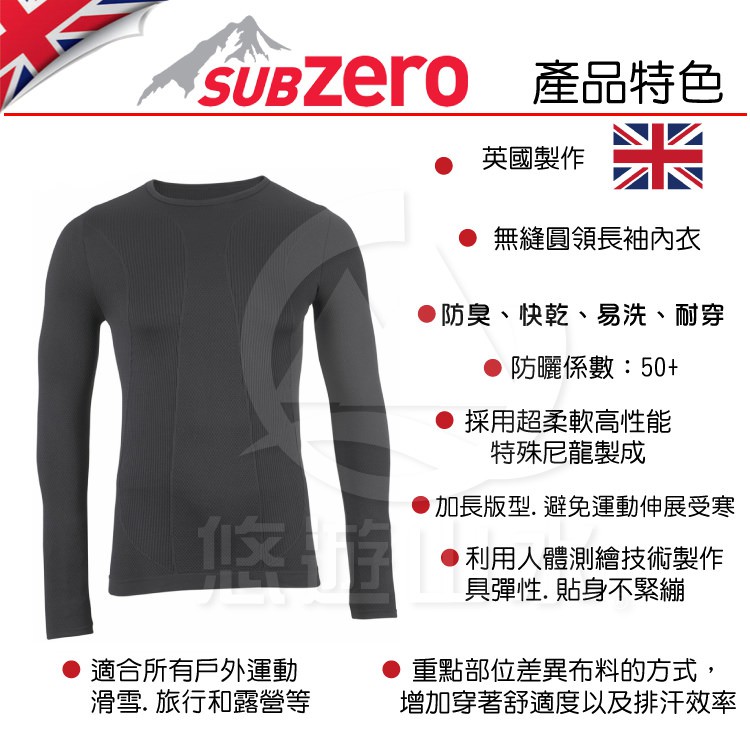 【Sub Zero 英國 兒童 Factor1+ 長袖無縫排汗衣《黑》】Factor 1 PLUS/內衣/薄長/悠遊山水