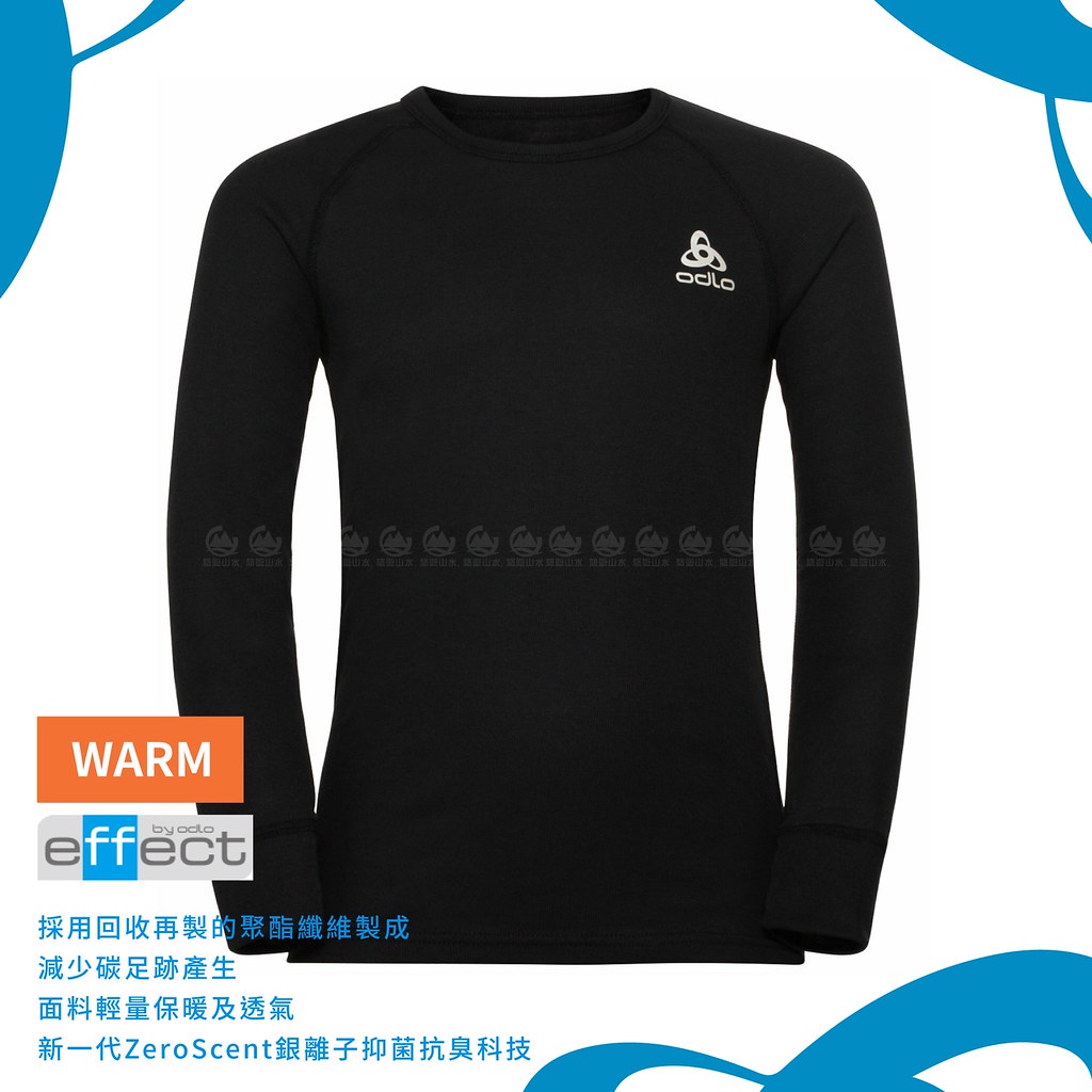 【ODLO 瑞士 童 ECO銀離子保暖型圓領上衣《黑》】159229/衛生衣/內搭衣/內層衣