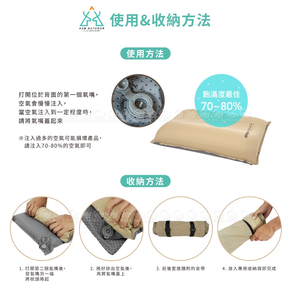 【KAZMI 韓國 KZM 輕柔舒眠自動充氣枕】K21T3M06/吹氣枕/靠枕/午睡枕/露營枕/旅行枕/戶外枕