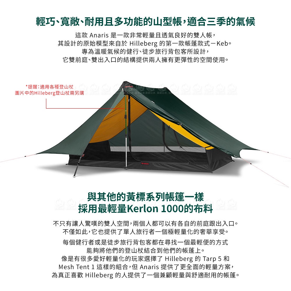 【HILLEBERG 瑞典 黃標 Anaris山小屋 輕量二人帳篷《綠1.4 kg》】018211/登山帳篷