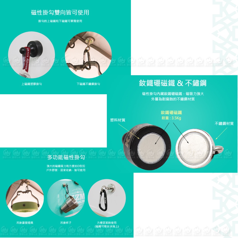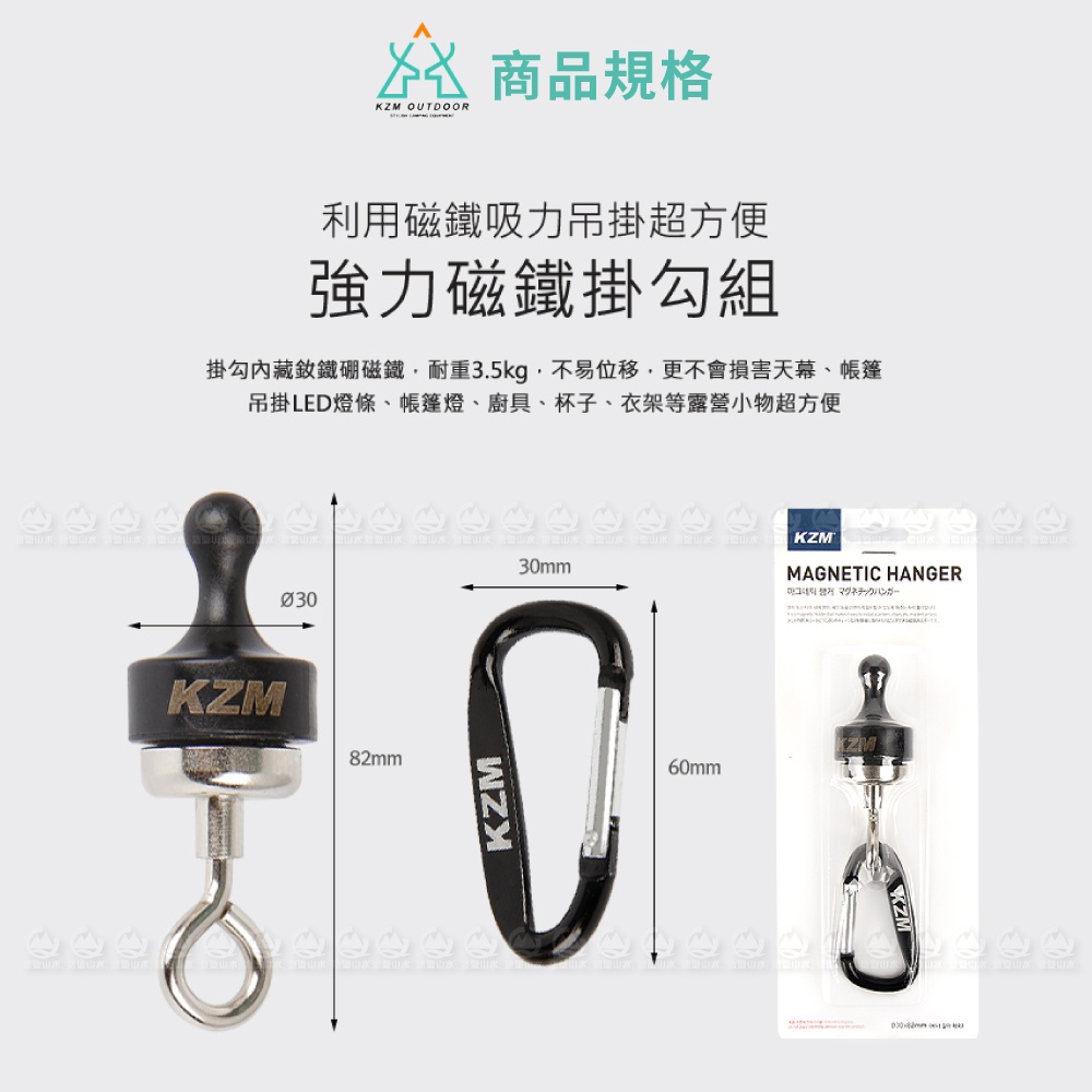 【KAZMI 韓國 KZM 強力磁鐵掛勾組】K9T3F004/戶外露營/五金吊鉤/D型扣/萬用掛勾